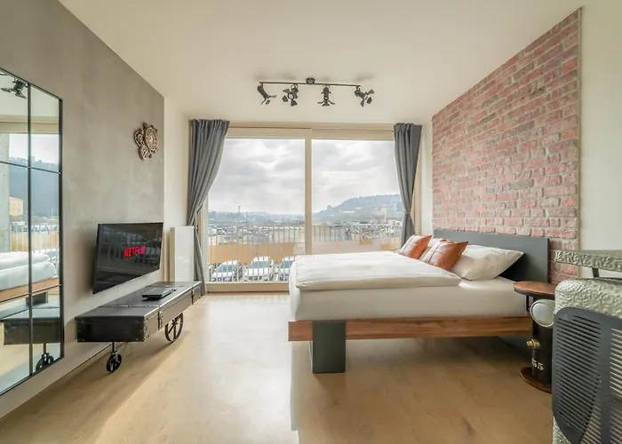 Die 35 m² großen Industrialux Suite By Rentez Prag befindet sich im Stadtviertel Praha 05, ungefähr 450 Meter von der U-Bahn-Station Anděl entfernt.